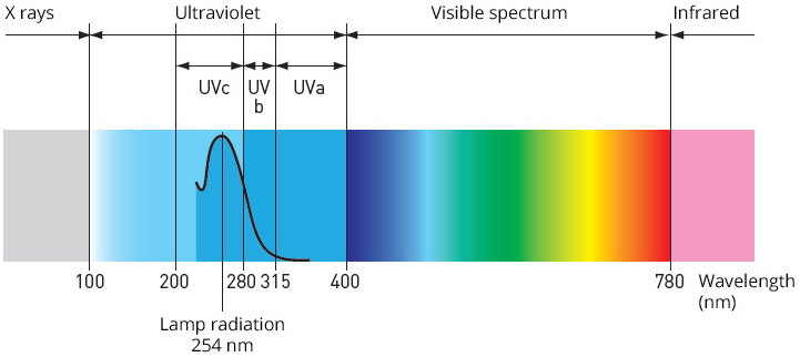 UV-C (100-280 nm) με μικροβιοκτόνες ιδιότητες.